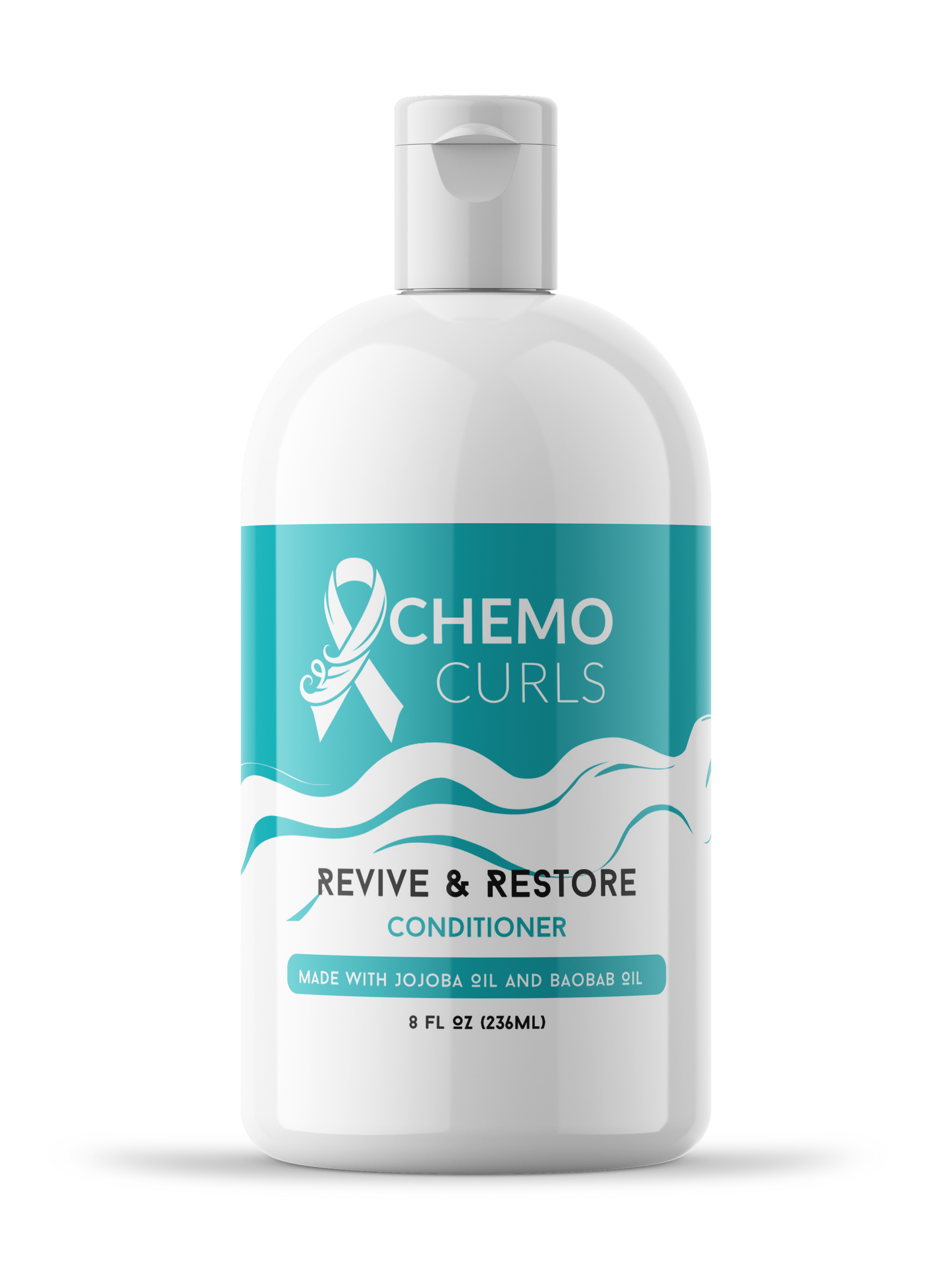 Enriched with a powerful blend of natural ingredients including deeply hydrating Jojoba oil and nourishing baobab oil, Chemo Curls Revive & Restore Conditioner works to replenish moisture, strengthen hair, and promote healthy growth.